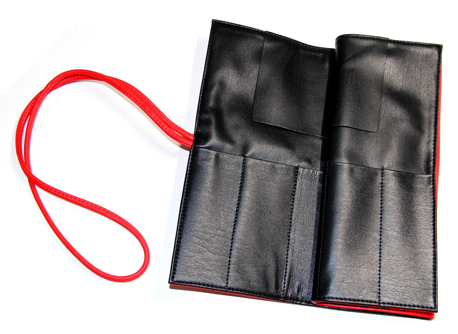 - Package: Leather like red wrapping pouch for up to 9 scissors